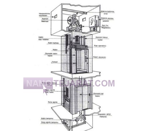 الکتروموتور بکار رفته سه فاز القایی آسنکرون با تعداد 4 قطب برابر دور اسمی 1410 در دقیقه با ولتاژ تغذیه 380 ولت و فرکانس 50 هرتز ، کلاسF ،IP21 با توانایی کشش ترافیکی 240 استارت در ساعت مناسب با عملکرد سیستم کنترل الکتروموتور VVVF ولتاژ متغیر ، فرکانس متغیر می باشد . ویژگی های کیفی و فنی این نوع موتور ها به گونه ای عمل می کند که موجبات گرم شدن موتور با اعمال افزایش آمپر مصرفی آن فراهم نخواهد شد . در این نوع تکنولوژی با اعمال مناسب فرکانس و ولتاژ زمینه ایجاد قدرت و دور الکتروموتور بگونه ای فراهم می شود که مصرف جریان برق را در زمان راه اندازی نسبت به موتورهای دو سرعته به حداقل می رساند و لاجرم نیازی به پروانه خنک کننده موتور نمیباشد .
