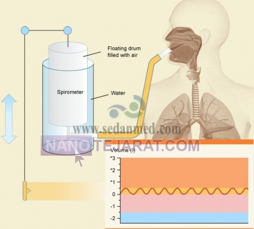 یک اسپیرومتر ساده در شکل نشان داده شده است. این دستگاه از طرفی به زنگی شبیه است که بالای یک ظرف آب قرار گرفته است. یک لوله خرطومی هوا، از یک قطعه دهانی به فضای بالای سطح آب در داخل زنگ، کشیده میشود.